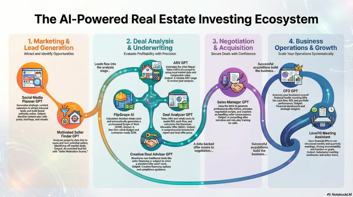 Whether you’re wholesaling, flipping, or building a rental portfolio, our suite of custom GPTs helps you close more deals.